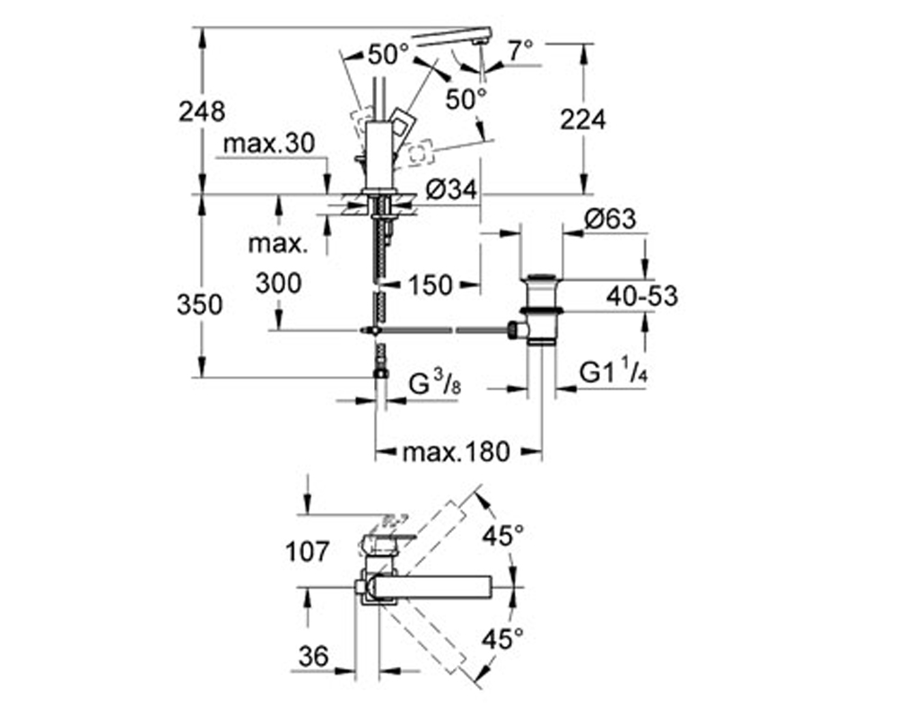 | Высота излива, мм | 224мм |