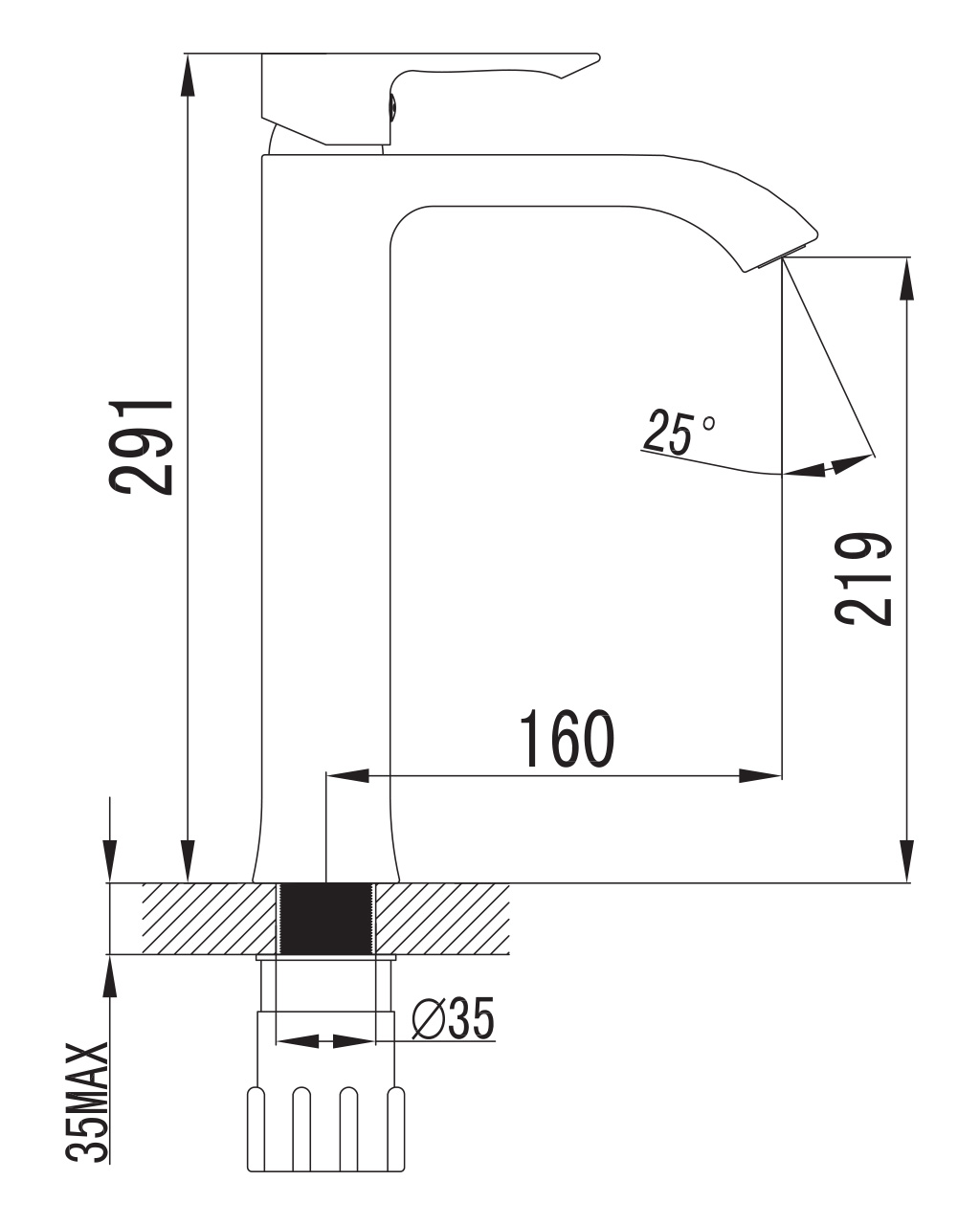 | Высота излива, мм | 219 |