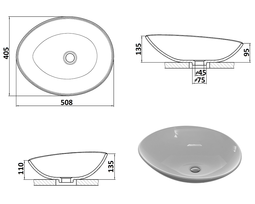 Умывальник «Лотос» Меланит глянец снаружи/антрацит шагрень внутри