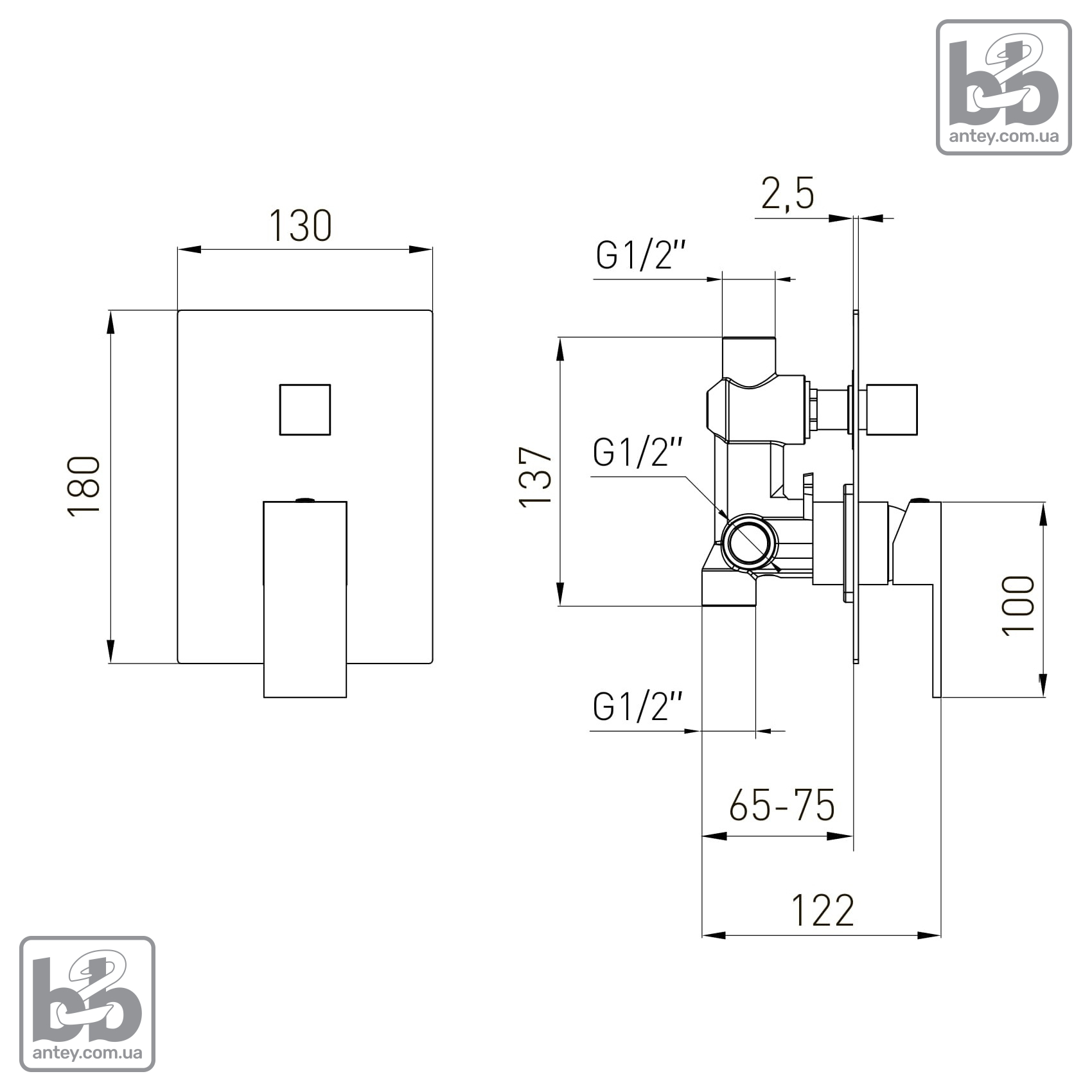 Встроенный смеситель для душа ''PARDO''