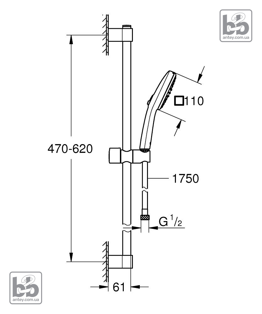 | Довжина душового шланга, мм: | 1750 |