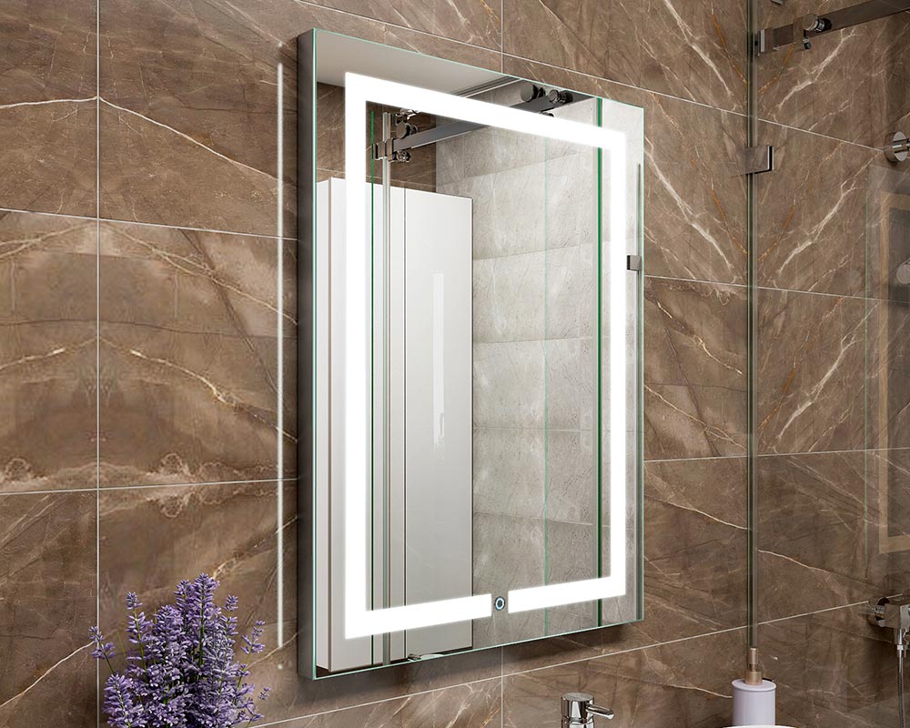 Дзеркало зі світлодіодним LED підсвічуванням «Карда» чудово підійде шанувальникам гармонії в строгому стилі дизайну. Чітка геометрична константа дзеркального полотна стане стрижневим елементом будь-якого приміщення, впорядкує простір і додасть граціозний вид.