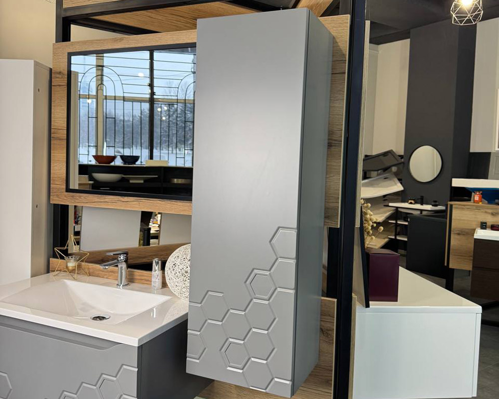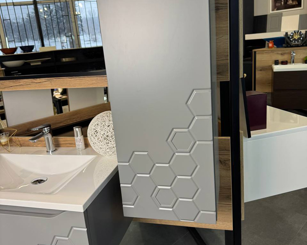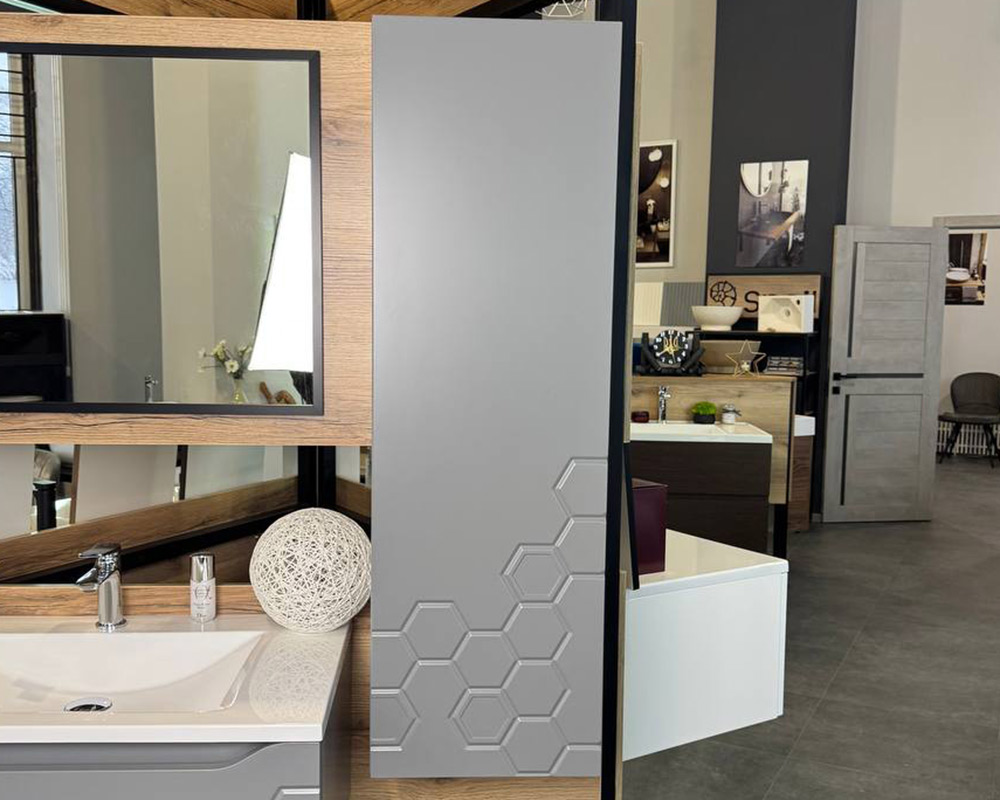 Корпус пеналу «Рой» для ванної кімнати виготовлений з фарбованого МДФ, використовується фурнітура Blum (Австрія), яка захоплює своєю бездоганною роботою і відмінною якістю. Неповторний та ексклюзивний фрезерований фасад відразу привертає увагу та придає пеналу ще більше вишуканості та стилю. Відкриття пеналу натиском з механізмом TIP-ON.