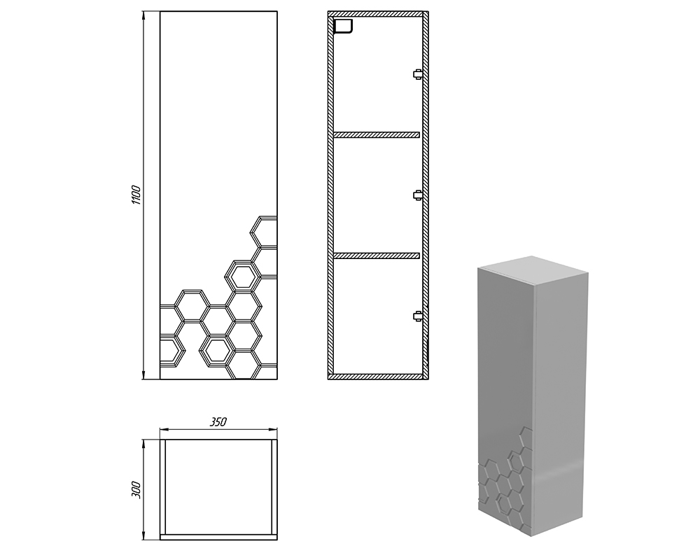 Розміри пеналу (ш * г * в): 350х300х1000мм