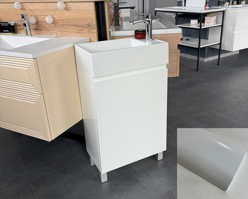 Корпус меблів покритий трьома шарами грунтовки і пофарбований чотирма шарами вологостійкої фарби. Тому наші меблі підходять і для дуже вологого середовища, вона стійка до змін вологості і до зміни температурних режимів. Петлі зліва.